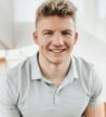 A woman with light blonde hair is in a gym setting, leaning against a barbell on a weightlifting rack. She has an intense and focused expression, wearing a black mesh sports bra. The gym environment includes weight plates and chains, suggesting a strength training area.